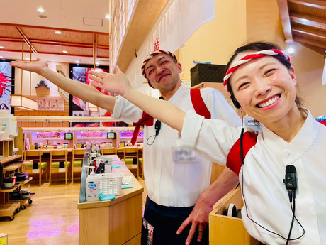 回転寿司のホール(アルバイト・パート)/週3日・4時間~未経験・バイトデビュー歓迎!髪色自由